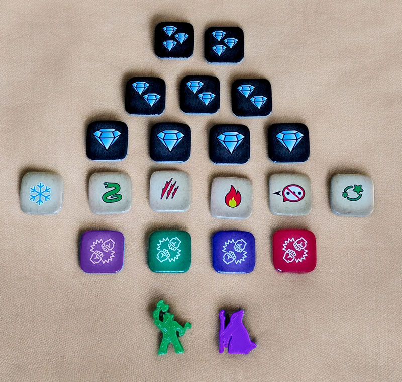 Autores: Agustín Czyrka y Juan Czyrka Ilustrador: Agustín Czyrka Duración de Partida: entre 30 minutos Cantidad de Jugadores: 2 Edad Recomendada: 10 años en adelante COMPONENTES: 1 tablero de puntuación 2 meples de personajes 5 dados 9 fichas de diamantes 5 fichas de estado 8 tarjetas de personajes 2 tarjetas de referencia 13 cartas de objetos 2 cartas de bestias 1 reglamento |
